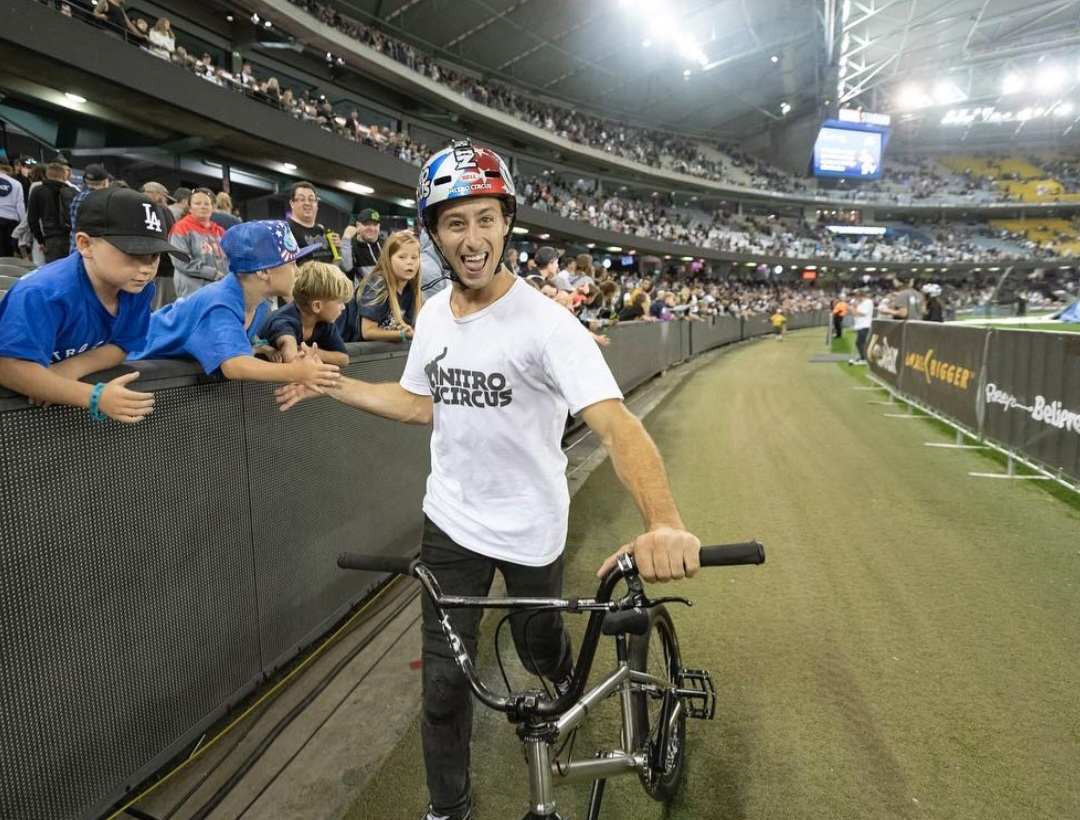 After joining the Nitro Circus, the then 22-year-old had to sit out the 1st Nitro Circus Tour in 2014 because he was seriously injured. After attempting 2 spins on his handlebars, he fell on them and broke his sternum, an injury that could have been fatal. However, Meyn was back at the start of the following tour in Australia and was allowed to cruise through his home town of Perth.